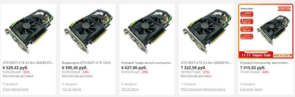 Всем привет, дорогие друзья. Рад вас видеть! На фоне постоянно растущих из-за майнинга цен, невольно задумываешься о покупке видеокарты из поднебесной. Первое, с чем вы можете столкнуться - это подделки Распознать их не сложно - они, как правило, стоят сильно ниже рыночных цен на подобные видеокарты, выглядят как-то полукустарно, ну и главное - находятся либо внизу списка видеокарт, либо вообще там не находятся (так как алик постоянно банит подобные объявления). Также на новых видеокартах, почему-то, присутствуют VGA. Суть такая: китайцы берут дешевые чипы от 4-5-6 поколения ЖыФорсов, после чего перепаивают их на новые платы, перепрошивают биос (чтобы видеокарта опознавалась как GTX 1050), и продают по цене между GTX 650 и настоящей GTX 1050. Как ты понимаешь, производительность у такого поделия находится на уровне той видеокарты, из которой был выдран чип. Благо, в случае, если вы раскроете обман и предоставите доказательства - алиэкспресс полностью встанет на вашу сторону и мало того