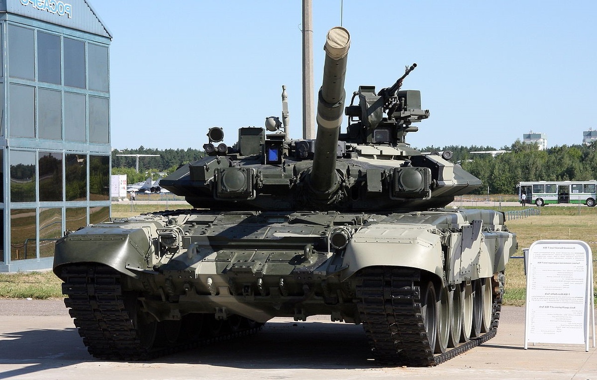 Основной боевой танк (ОБТ) Т-90 является дальнейшим развитием Т-72. Он был принят на вооружение российской армии в 1993 году, а его низкоскоростное производство началось в 1994 году. В настоящее время российская армия эксплуатирует около 750 - 1 000 таких ОБТ всех вариантов. Это самый современный танк, находящийся в настоящее время на вооружении российской армии, которой требуется около 1 500 таких танков. Также в настоящее время это единственный серийный ОБТ в России. Т-90 считается одним из 10 лучших основных боевых танков в мире. В настоящее время это самый коммерчески успешный основной боевой танк на мировом рынке. Экспортными операторами являются Алжир (305), Азербайджан (114), Туркменистан (40) и Венесуэла (50~100). Крупнейшим экспортным оператором является Индия, которая заказала 1 657 танков Т-90С. Этот индийский заказ включал 248 танков, поставленных из России, 409 танков, собранных на месте из комплектов для сбивания, и еще 1 000 танков производятся по лицензии в Индии. Производство планировалось завершить в 2020 году. Ирак недавно заказал 73 российских основных боевых танка. Поставки начались в 2018 году. Вьетнам заказал еще 64 единицы. Т-90 участвовал в боевых действиях во время военных конфликтов на Украине и в Сирии. В ОБТ Т-90 используется хорошо зарекомендовавшее себя шасси Т-72 и башня со всеми системами вооружения Т-80У. Имеет сварной композитный броневой корпус со встроенными блоками динамической защиты «Контакт-5». Ранние серийные танки Т-90 имели литую башню. Со временем производство перешло на сварные башни. Защита Т-90 усилена системой противодействия «Штора-1». Эта система появилась в 1980-х годах и первоначально была разработана для противодействия угрозе, исходящей от западных противотанковых ракет, таких как TOW, HOT и MILAN. Он также эффективен против противотанковых ракет, таких как советский Конкурс и китайский HJ-8. «Штора-1» излучает инфракрасные сигналы, блокирующие сигналы наведения и управление глушением приближающихся противотанковых ракет. Система также оснащена лазерными приемниками предупреждения, которые могут запускать дымовые гранаты, как только танк освещается лазером. Эта система контрмер была впервые публично представлена в 1995 году. Некоторые российские источники утверждают, что эта система доказала свою эффективность в Сирии. Сообщается, что американские противотанковые ракеты TOW 2 и китайские HJ-8, выпущенные сирийскими боевиками, не были эффективны против танков Т-90, оснащенных системой «Штора-1». Хотя система «Штора-1» не эффективна против топовых ударных ракет, таких как Javelin. В настоящее время эта система считается устаревшей. Новейшие российские танки больше не используют инфракрасные глушители этой системы, хотя ее лазерные приемники предупреждения по-прежнему используются для запуска дымовых гранат. Основной боевой танк Т-90 вооружен полностью стабилизированной 125-мм гладкоствольной пушкой 2А46М. Эффективная дальность стрельбы снарядом APFSDS составляет 2 000-3 000 м днем и 2 000-2 600 м ночью. Бронепробиваемость составляет около 590-630 мм на дальности 2 000 м. Этот танк также может запускать противотанковые управляемые ракеты 9М119М Рефлекс (обозначение НАТО AT-11 Sniper-B), так же, как и обычные боеприпасы. Эти ракеты имеют дальность 4-5 км и могут также поражать низколетящие вертолеты. Ракеты используют полуавтоматическое лазерное наведение и и