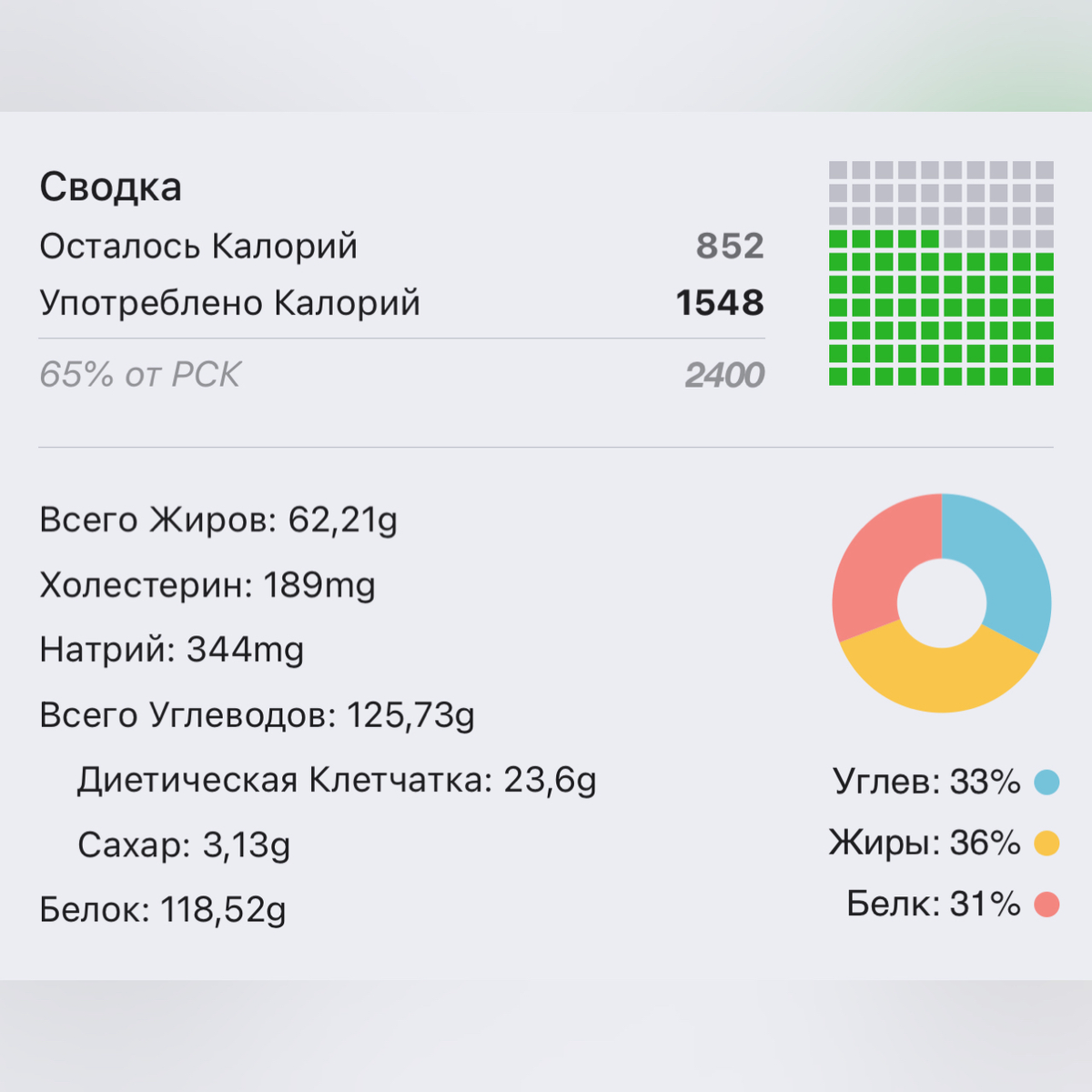 1550 - Это едва покрывает базовый метаболизм у молодого активного организма. Откуда ещё может быть усталость, кожа и волосы? Смотрю анализы: ✅ Ферритин ок ✅ Магний ок ✅ Витамин Д ок ❌ Общий белок крови - 66 гр/л На самой нижней границе референсов. ❗️Для взрослого человека этот показатель минимум 75 гр/л ❓Возможно, стоит проблема с усвоением белка, потому что в рационе белка более, чем. ❓Может быть ещё пониженная кислотность. ❓Дефицит витамина В6. Начинаю допрос с пристрастием. С мясом, оказывается, не дружим - «тяжело после мяса». Это уже вопросы к желчному. Теперь внимательно смотрим рацион: 👉🏼 Белка вроде много, почему провал по нему? 👉🏼 Завтрак - пустая каша и 15 гр икры - так себе источник жиров и белка, которые должны быть в рационе. Без этих нутриентов желчный утром не запустится, что чревато в дальнейшем песк