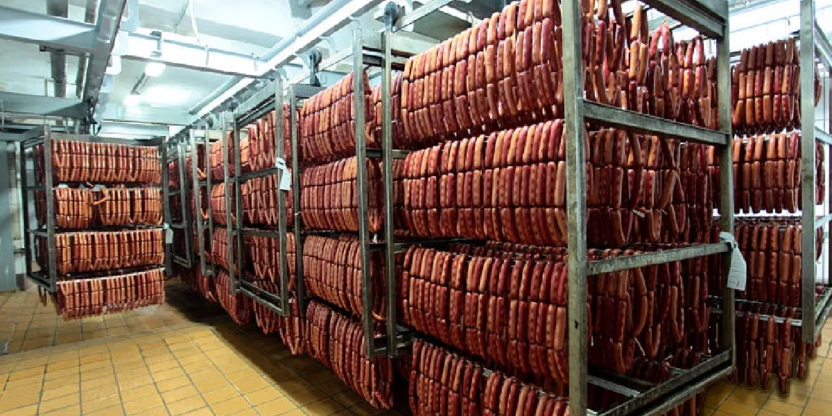 9) Заморозка. Если сосиски нужно хранить или перевозить в замороженном виде, то их замораживают в камере с температурой -18оС.