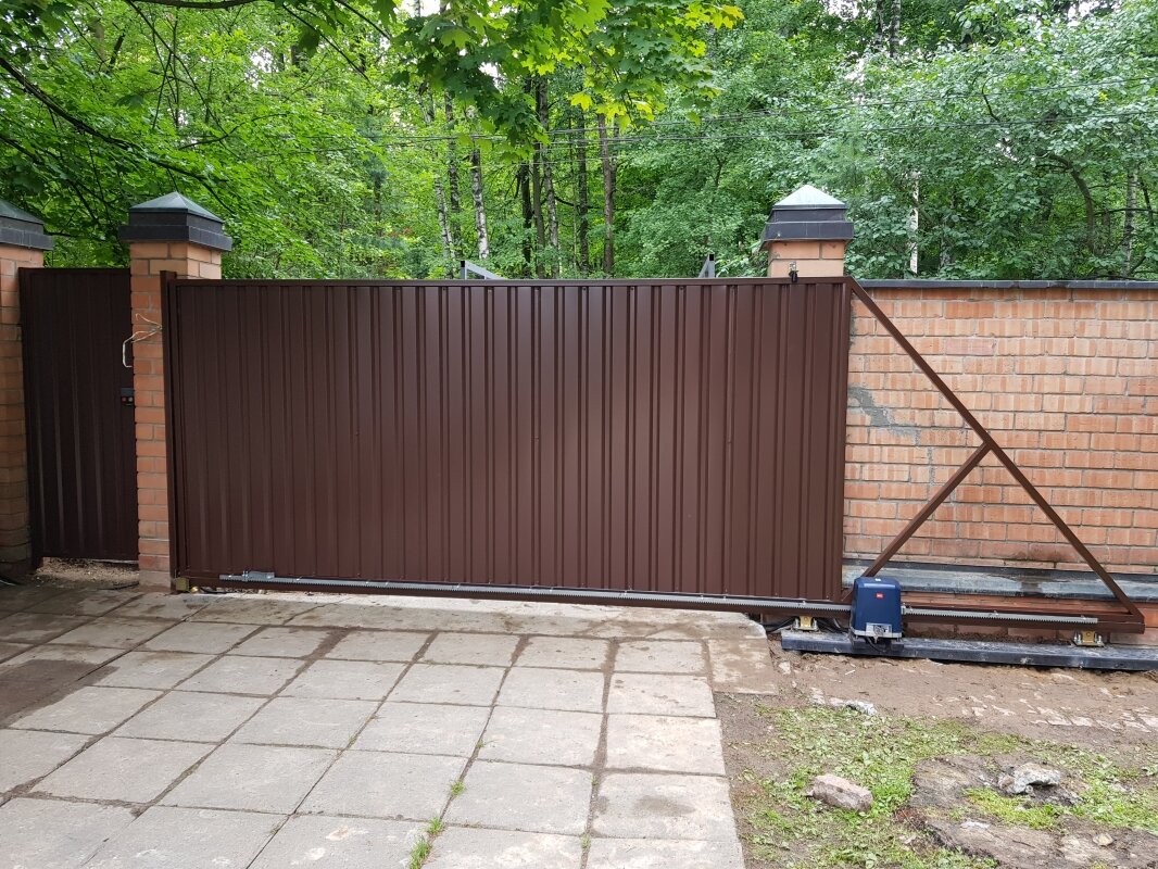 Надежно защитить автомобиль и прочие вещи от кражи, обеспечить содержимому гаража комфортный микроклимат в любое время года и оригинально дополнить внешний облик строения помогут правильно подобранные ворота. Современные производители предлагают большой выбор разнообразных ворот для гаража. Как правило, они делятся, в зависимости от способа открывания, на 4 основных вида: рулонные, подъемно-секционные, распашные и раздвижные. Каждая из разновидностей имеет свои особенности и нюансы, которые нужно обязательно учитывать при выборе и покупке. Сдвижные (они же раздвижные, или откатные) Достаточно удобная в эксплуатации конструкция — полотно сдвигается вбок по рельсе с помощью специальных роликов. Существует и более современные модели — телескопические. В них полотно складывается как бы само в себя (свободное место для отъезда секции здесь не требуется). Такие ворота (относится к стандартной разновидности) не подойдут владельцам компактных гаражей — требуется наличие свободного пространства