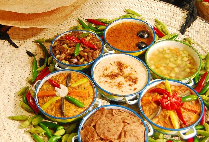 Сладкая вермишель с кардамоном и соленым омлетом. Звучит странно, но советуем не упускать возможность попробовать это блюдо в Дубае. В ресторанах национальной кухни его готовят к завтраку. Тонкую отварную лапшу слегка обжаривают во фритюре, чтобы она стала золотистой и немного похрустывала во рту. Омлет готовят отдельно, а затем мелко рубят или сворачивают конвертом, чтобы наполнить сладкой начинкой. Неповторимую пикантность придает соус на основе кардамона: пряный, приторный, тягучий. Угощение напоминает пудинг и запеканку. Вкус даже не с чем сравнить – вряд ли вы пробовали что-то подобное раньше. Блюдо одновременно сладкое, соленое и пряное – обязательно попробуйте.