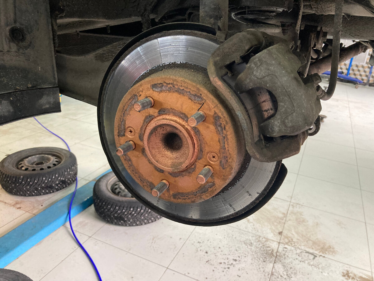 При диагностики выявлен сильный износ задних тормозных механизмов, производится замена дисков и колодок + чистка всего механизма.