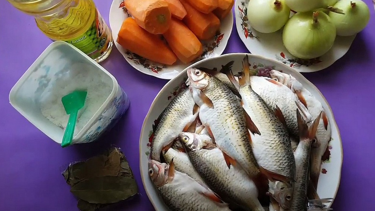 Рецепт: паштет из речной рыбы в домашних условиях Требуемые ингредиенты 1. Моем, чистим от чешуи, потрошим рыбу. Она может самая разная – плотва, карасики, уклейка, подлещики и т.д. Далее есть два варианта – можно обрезать все плавники, жабры и даже убрать головы, а можно готовить из цельной рыбы и так будет даже полезнее. Выбирайте сами. В этот раз всё чистим и отделяем головы. Рыбу крайне желательно готовить свежей, а не из морозильника. Вкус будет совсем разный. Рыбу режем на средние кусочки, немного солим, перемешиваем. 2. Готовим овощи. Чистим морковь, лук и режем кольцами. Если хотите придать красивый цвет – добавьте немного свеклы 3. Берём посуду с толстым дном (желательно казан), наливаем подсолнечное масло. На дно сначала выкладываем головы (можете их исключить), затем слой лука и моркови. Далее опять кусочки рыбы и снова слой моркови с луком. И так выкладываем все ингредиенты. Промеж слоёв добавляем лавровый лист и черный перец. Так же можно немного присолить всё во время ук