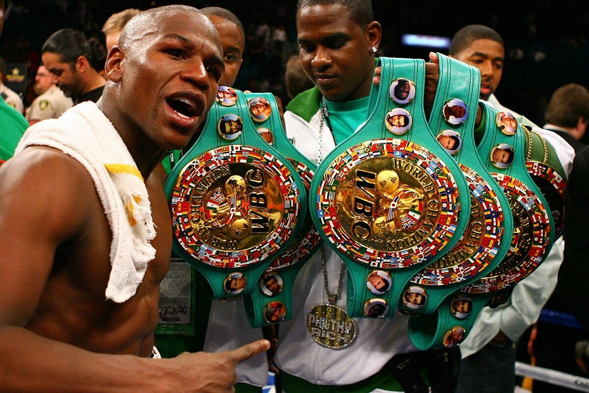 Флойд Мейвезер - бронзовый призер олимпиады, чемпион 5 весовых категорий (в основном в легком и среднем весе).Мейвезер боксировал в Артуро Гатти (правда не совсем честно), Оскаром де ла Хойей, Хуаном Мануэлем Маркесом и Мэнни Пакьяо. Никому из своих соперников Флойд не оставил ни единого шанса. Боксер завершил карьеру в 2017-м году с рекордом 50-0, 27 из которых окончил досрочно. Мейвезер любит внимание, о чем свидетельствует его инстаграм с 28 миллионами подписчиков. Он одним из первых понял, что гонорар за поединок может возрасти ровно настолько, насколько часто его лицо будет мелькать в прайм-тайм. Поэтому боксер охотно собирал репортеров, рассказывая детали своей подготовки к тому или иному бою. Без подробностей, разумеется. Это тренировка - вырезка одного из его интервью. Вся тренировка состоит из 3-х кругов. Между каждым кругом 1 минута отдыха. Упражнения выполняются в течении одного боксерского раунда (3 минуты), на каждое упражнение боксер тратит 1 раунд, между раундами отдых