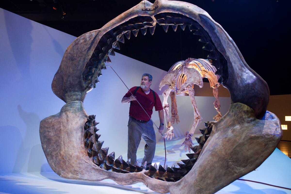 1. Мегалодон Мегалодон – это огромных размеров акула, обитавшая примерно от 2,6 миллионов до 23-ех миллионов лет тому назад. Мегалодон был одним из самых (если не самым) сильных и ужасных монстров, которые когда-либо жили на нашей планете. Его главной добычей были киты. Это не удивительно, ведь размер его зубов варьируется от 8 до 19 сантиметров, а длина самой акулы составляется примерно 30 метром, что в 6 раз больше длины белой акулы. 2. Титанобоа Титанобоа - вид вымерших змей. Судя по строению скелета, являлась близким родственником удава, однако охотился этот монстр, как крокодил. Титанобоа был в 2 раза длиннее и в четыре раза тяжелее анаконды, то есть его длина составляла 14 метров, а вес – 800 кг. 3. Дунклеостей Дунклеостей - это хищное существо плавало в океанах Земли 360 миллионов лет тому назад, и оно было одним из самых крупных представителей вымершего отряда артродиры. Эта рыбка была 9 метров в длину (к слову, самая большая белая акула достигает до 6 метров в длину). Убивала