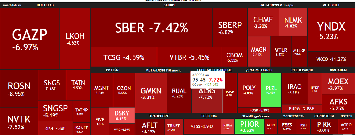Сегодня у многих российских инвесторов прибавилось седых волос, рынок летит в пропасть, продают даже фундаментально сильные компании, даже перспективы двухзначной дивидендной доходности не в силах противостоять геополитическим рискам. Если честно, то правда страшно смотреть на свой брокерский счет, даже "голубые фишки" теряют от 5% до 10%, а в моменте просадка составляла более 10%. Что происходит и что же лучше делать, сейчас попробуем разобраться. Всему виной геополитика Если пробежаться по новостным сводкам, станет ясно, что ни западные страны, ни Украина, ни Россия не желают серьезных конфликтов, уж тем более с применением оружия. Но проблема в том, что и сдавать назад никто не хочет, это рождает напряженность, это пугает инвесторов, которым проще выйти в кэш и наблюдать. Мы с Вами не политологи, не "сильные мира сего", поэтому точно не можем знать, чем закончится вся эта ситуация.