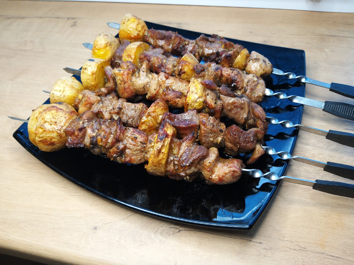 Сегодня я расскажу Вам способ маринования шашлыка из филе бедра индейки. Маринуя его таким образом – Вы получите очень сочный и вкусный шашлык. Готовить можете на свое усмотрение. Хоть на природе, хоть в домашних условиях с использованием электрошашлычницы. Я готовила дома, так как в зимний период на природу выбираться не любитель. Итак, для приготовления 2-3 порций нам потребуются следующие ингредиенты: - филе бедра индейки (1 кг.); - лук репчатый (1 шт.); - чеснок (5 зубчиков); - перец чили (1 шт.); - лавровый лист (4 шт.); - подсолнечное масло; - соль (по вкусу); - перец черный молотый (по вкусу); - перец красный молотый (по вкусу); - чеснок сушеный молотый (по вкусу); - орегано сушеный (по вкусу); - аджика сухая (по вкусу). Берем глубокую миску, которую можно поставить в микроволновку. Кладем в нее лавровый лист и перец чили. Чистим чеснок и мелко нарезаем или давим при помощи чеснокодавки. Добавляем в миску чеснок. Добавляем перец черный молотый, перец красный молотый и нем