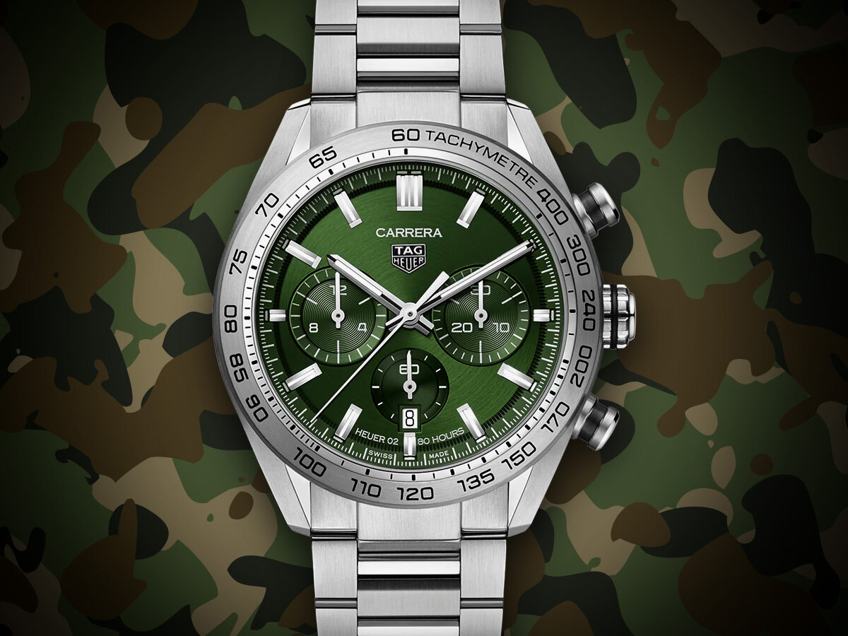Динамика большого города в этой модели Carrera сочетается со стальной сдержанностью и уверенностью. Насыщенный зеленый циферблат очерчен стальным безелем с тахиметрической шкалой. Светящиеся часовые метки и стрелки подсказывают точное время в любой ситуации. Секундные насечки, дополнительные циферблаты, отлично считываемые показания – идеальное решение для любителя высоких скоростей.