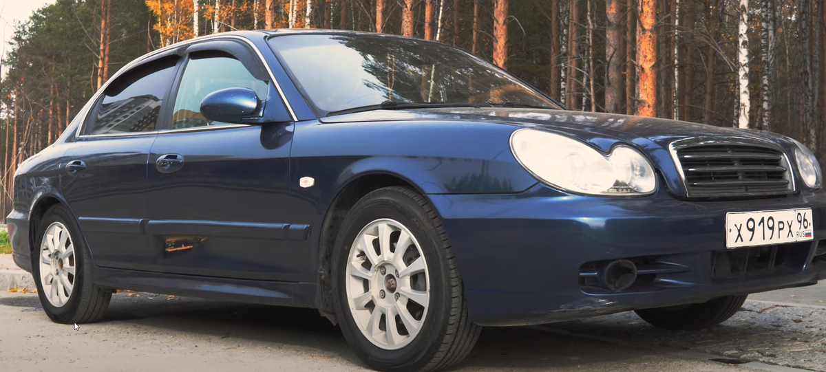 Хендай соната 4 - легендарный седан начала 2000. Он выпускался целых 12 лет - с 2001 по 2013 года. Более популярен он был в северной америке, там на него давали гарантию 10 лет! Также на платформе соната делали не менее известный санта фе, а это уже двухтонный кроссовер Сонату иногда сравнивают с волгой из-за его длины, а она составляет 4Ю8 метра. Салон у этой машины тоже просторный - 1820 мм в ширину. Тот же хендай солярис имеет ширину на 12 сантиметров меньше. Можно заметить, что между водительским и пассажирским сиденьем есть подлокотник на 2 локтя, что является очень удобным решением. Сзади также просторно, места достаточно для поездки втроем, особенно это ощутимо в дальних поездках. Что касается дальних поездок, то багажник здесь можно было бы сделать и больше, он здесь 430 литров, это не мало, но у того же соляриса, рапид, форд фокуса или пассата он около пятисот литров. А что касается фольксвагена пассат, то там он вообще 570 литров. Что касается двигателя, то здесь достаточно