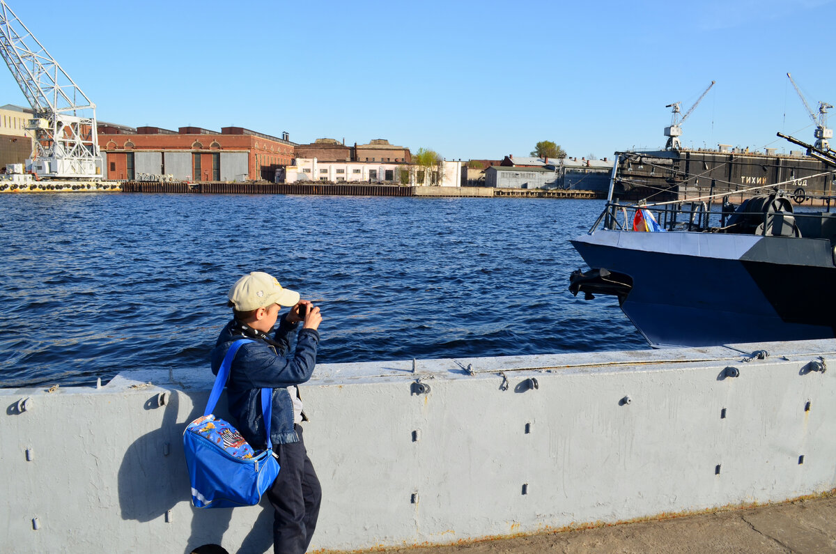 Нашел в своих архивах фотографии, снятые на прогулке по весеннему Петербургу в 2015 году на обычную "мыльницу" Панасоник. Тогда я был 8-ми лет от роду и помимо того, что только-только пришел в футбол, еще катался на роликах и совсем немного увлекся фотографией (и быстро перегорел, - непросто успевать все и сразу). Это был месяц май. Как раз после празднования Дня Победы. Мы с мамой устроили пешую прогулку по Петербургу и дошли до Набережной Лейтенанта Шмидта, где еще стояли военные корабли после парада. Набережная Лейтенанта Шмидта находится на Васильевском острове. С этой набережной открывается прекрасный вид. Наверное, знаете, кто такой лейтенант Шмидт? Я не знал. Подсмотрел информацию в интернете, но не совсем понял, в чем героизм. Лейтенант Петр Шмидт - русский военно-морской офицер, революционер, считал себя командующим Черноморским флотом. Возглавил Севастопольское восстание 1905 года, захватил крейсер Очаков. Единственный морской офицер участвовавший в Революции 1905-1907 года н