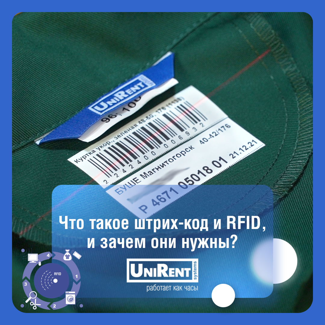 Технологии штрих-кодирования и RFID-идентификации получили широкое распространение в сфере аренды спецодежды. Давайте разберемся, что же это такое и почему они популярны? Штрих-код, полное название штриховой код — это самая распространенная технология цифровой идентификации. Штриховой код представляет собой последовательность черных линий и белых промежутков четко определенных размеров, с помощью которых происходит кодирование цифровой и другой информации в удобной для машинного считывания форме. Благодаря размещенному на одежде штрих-коду клиент может проследить историю движения каждой единицы рабочей одежды с момента начала аренды. Кроме того, штрих-код позволяет персонализировать одежду каждого работника. RFID (Radio-frequency identification) в переводе с английского означает радиочастотную идентификацию. RFID-технология – это метод бесконтактной идентификации, отслеживания и учета объектов, основанный на радиочастотном электромагнитном излучении. Там, где требуются автоматизация