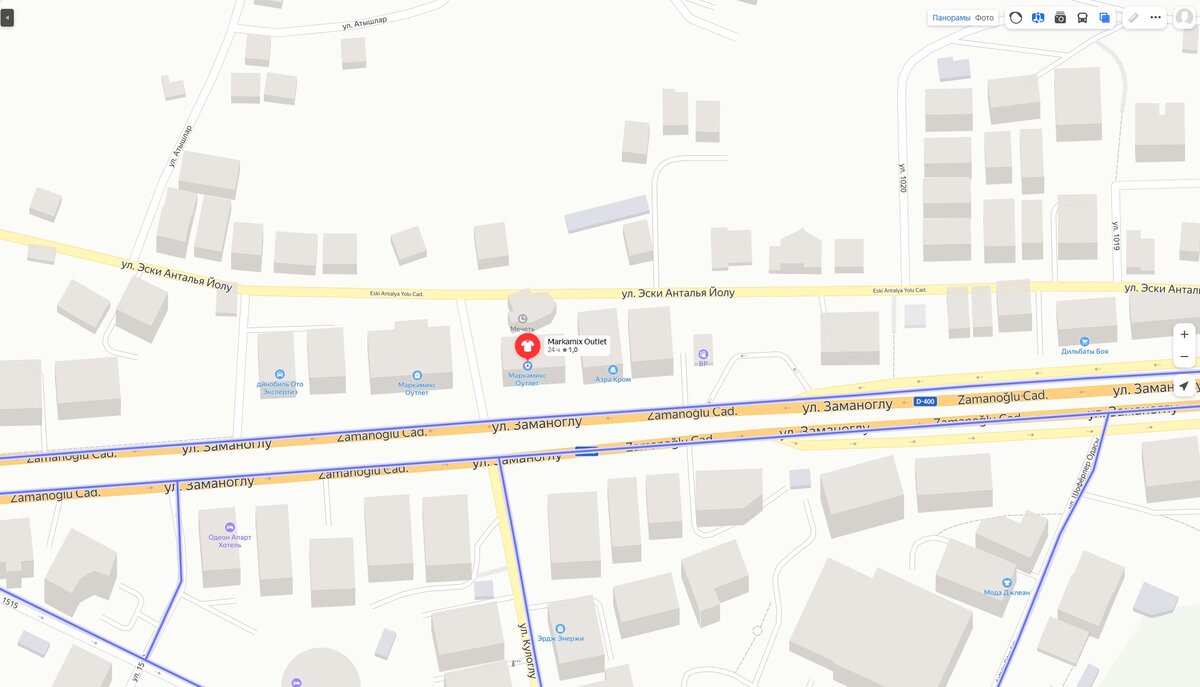 В день встречи с гидом «Пегас Туристик», нам предложили поехать в Торговый центр Алании бесплатно на автобусе. Нам выдали чек с номером и в 14:00 мы уже сели на автобус до Алании. В статье речь пойдёт о торговом центре "Markamix Outlet". Личных фото за 2021 год у меня нет, поэтому есть только скрины просмотра улиц Алании через Яндекс (2015 год). Сейчас внешний вид торгового центра немного изменился. Не рекомендую тратить время на данную поездку, если вы планируете потом своим ходом доехать до Алании!!! Причины не посещать данный торговый центр Во-первых, это огромная трата времени, у нас ушло 4 часа. Во-вторых, автобус заезжает в отели по пути и забирает тех, кто тоже едет в торговый центр, на обратном пути соответственно развозит по своим отелям; В-третьих, это не торговый центр в нашем понимании со множеством магазинов разных марок. Нет. Это один 6 этажный магазин, с одной кассой, одним хозяином, с лифтом. На этажах расположены сувениры, продукты, текстиль, одежда, сумки и тому под