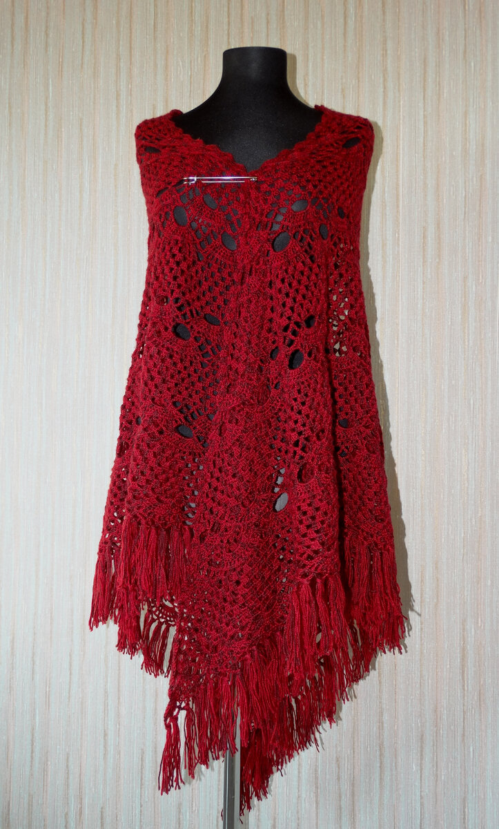 Не все рукодельницы любят принтованную пряжу. Эффект может получиться довольно необычный. Я за эксперименты. Работала с этой пряжей два раза, и в обоих случаях результаты превзошли все наши с заказчиком ожидания. Покажу свои работы из Вита Бриллиант Принт. Может быть они помогут развеять чьи-то сомнения относительно того, вязать из этой ниточки, или нет. Сперва о самой пряже. Производитель — Германия. Состав: акрил 55%, овечья шерсть 45%. В 100 граммах 380 метров. Ниточка довольно приятная, мягкая, шелковистая. После ВТО цвет и текстура "раскрылись". Оттенок стал более ярким, богатым, а само изделие — мягким. Отмечу важный нюанс: свои работы я вязала крючком. В изделии, связанном спицами, пряжа может выглядеть по-другому. Шаль крючком из Vita Brilliant Print 2611 Первое изделие из этой пряжи — шаль с узором "веера". Схема взята из Журнала Мод, добавила её в галерею. Цвет оказался очень капризным. Реальный оттенок удалось получить на фото 2 и 3. Уточню сразу про расход пряжи на такую ш