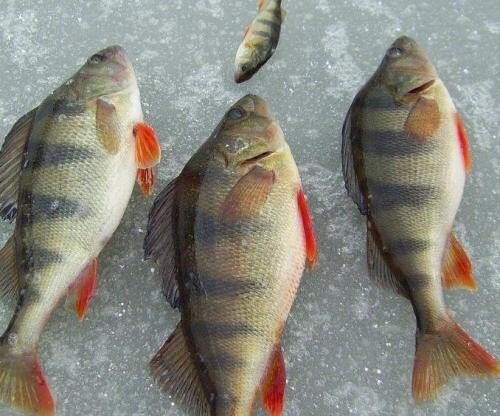 Для зимнего ужения окуня наиболее эффективно и рационально использовать мормышки. Мормышки конструктивно представляют собой крючок, впаянный в грузик. Этот груз может быть различной формы, веса и цвета. Хотя бытует мнение, что окуни в основном интересуются игрой мормышки, а не ее формой. Обычной проводкой снасти может выступать скачкообразное перемещение приманки вдоль вертикальной линии, но плавные движения или планирование мормышки окуня в основном не привлекают. Для ловли окуней в зимнее время можно использовать достаточно крупные изделия, но по горизонтали они не должны превышать 7-5 мм. По форме наиболее используемыми можно считать прямоугольные, сферические, усеченной пирамиды, шарообразные и цилиндрические мормышки. Эффектом привлекательности для рыбы может послужить цвет изделия. Как правило, это латунное покрытие или медное. Было замечено, что в зимний период, этот хищник хорошо реагирует на вертикальные, но маленькие мормышки типа «чертик». Размер приманки обычно подбирают в