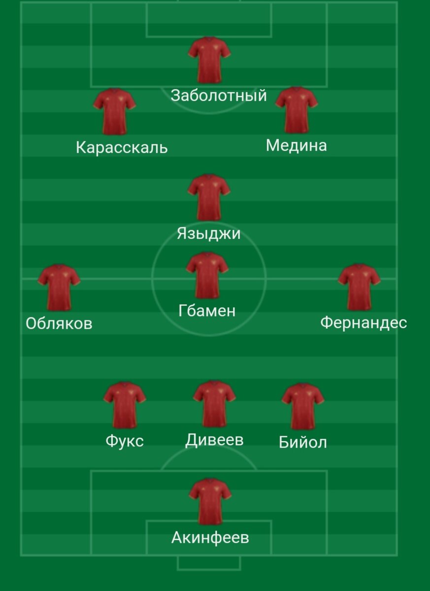 Добрый день,дорогие читатели!) Хочу поделиться с вами о возможном стартовом составе ЦСКА на матч со Спартаком,связи с усилением армейцев в зимнее трансыферное окно. Матч пройдет на 26 февраля на Открытии Арене. Всех новичков ЦСКА брал на усилениее стартового состава,закрыл некоторые проблемные позиции, и на мой взгляд состав будет такой: Вратарь,естественно Игорь Акинфеев. Далее,уверен,что будет 3 центральных защитника,а именно Яка Бийол,Игорь Дивеев и набравший форму Бруно Фукс. Справа по всей бровке Марио,слева Иван Обляков. В опорной зоне сыграет новичок Гбамен,чуть выше расположиться Юсуф Языджи. И трио Атаки, это центрфорвард Антон Заболотный,правее от него Хесус Медина,правее Карасскаль. А что вы думаете по составу армейцев на этот матч?) Делитесь в коменнтариях!))