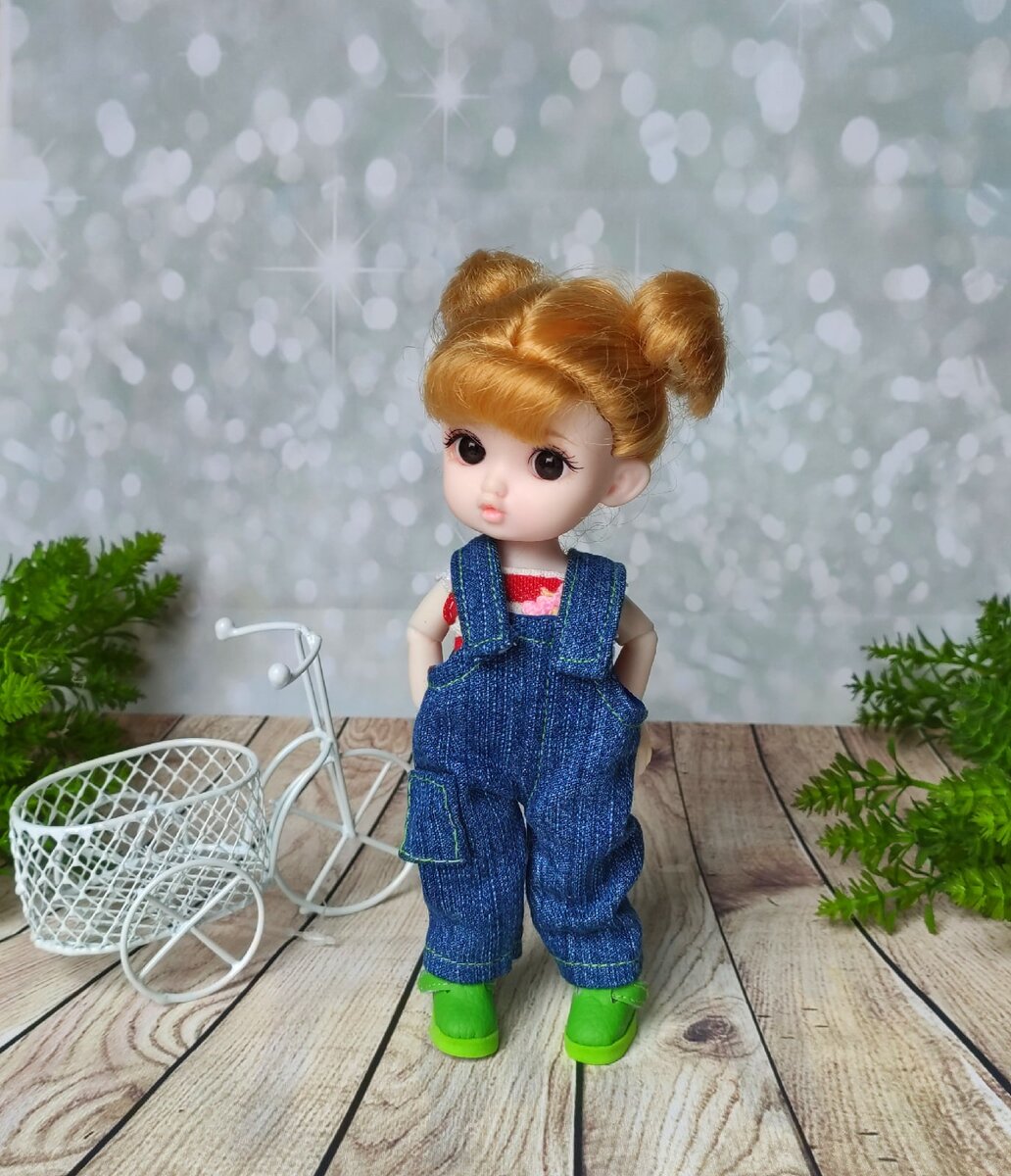 Куклы тоже любят красиво одеваться, поэтому сегодня расскажу как сшить джинсовый комбинезон на куколку 16 см. Итак, шьём комбез с кармашком на бедре и манжетой, ссылку на выкройки добавлю в конце статьи, а пока представим, что у нас уже выкроен кармашек и 2 детали комбинезона