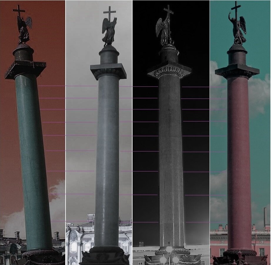 Начнем с первого изображения. Обратите внимание на то, что на нём вторая справа колонна уж слишком явно демонстрирует ярусность. Посмотрим, насколько эта ярусность проявляется на других снимках