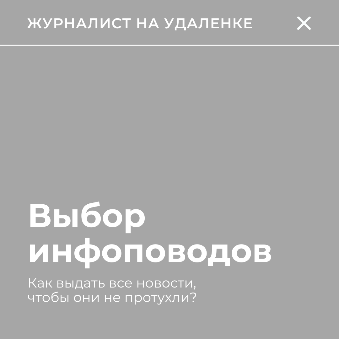 Журналисты, которые работают с собственными материалами, зачастую сталкиваются с проблемой, когда мероприятие одно, а инфоповодов несколько. Опытные акулы пера берут с собой ноутбуки и выдают первые заметки, находясь еще в зале заседаний или на пресс-конференциях. Особенно важно это для региональных корреспондентов, работающих на федеральные издания. Новостники постоянно соревнуются между собой, чтобы публикации на сайтах СМИ появились быстрее, чем у конкурентов. У журналистов, которые не один год работают, есть собственная структура построения текстов на определенную тематику - так называемый шаблон на все случаи жизни. Также в их арсенале есть заготовки, связанные с требованиями редакционных стандартов и позволяющие сократить время на подготовку новостей. Если говорить о нескольких темах для публикаций, то здесь корреспонденты расставляют приоритеты в зависимости от значимости инфоповодов. Подготовка заметки, состоящей из трех абзацев и включающей цитату спикера, у опытных бойцов жур