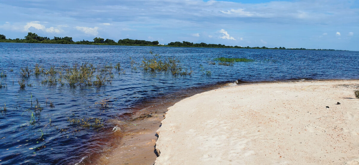 Рио Негро в переводе означает "Черная река", и она действительно таковой является. Вода в ней «чернющая», но, при этом, чистая. И очень теплая. По ощущениям градуса 33. Заходишь как в парное молоко. Ой, то есть, как в черный кофе. Короче, купаешься в "Американо". СТРАШНО ЛИ? Честно? Купаться немного страшно. Ну, а как вы хотели то? Сначала, буквально в 300 метров от этого пляжа мы ловили пираний, а теперь тут купаемся. Местный водитель нашей лодки, конечно же, сказал, что именно тут, на "пляже" пираний нет, они водятся там, где ил. Но все равно не очень-то приятно заходить в воду, когда тот самый ил, якобы всего лишь на том берегу, в 300-х ста метрах. Ладно пираньи, а есть же еще и анаконды, и потом, как выяснилось, еще и большие голодные кошки, живущие в джунглях, и любящие прогуляться по пляжу. Судя по всему, на этом пляже недавно гуляло семейство ягуаров, оставив следы. Дно – песок, но он не мягкий, как на тропическом острове, а какой-то жесткий. Больше похожий на тот, в который м