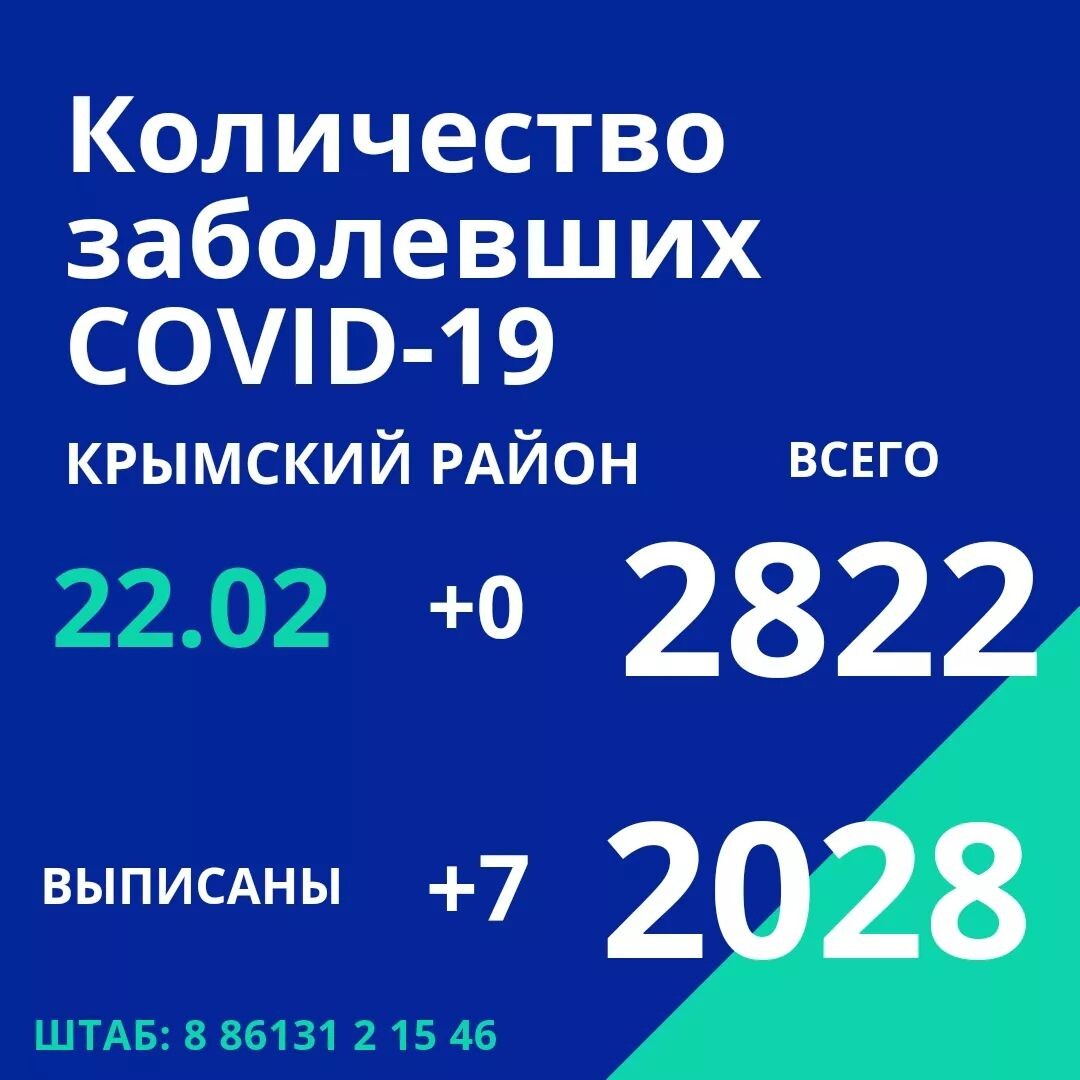22 февраля по информации оперативного штаба Краснодарского края в Крымском районе 0 новых случаев заражения коронавирусной инфекцией.⠀