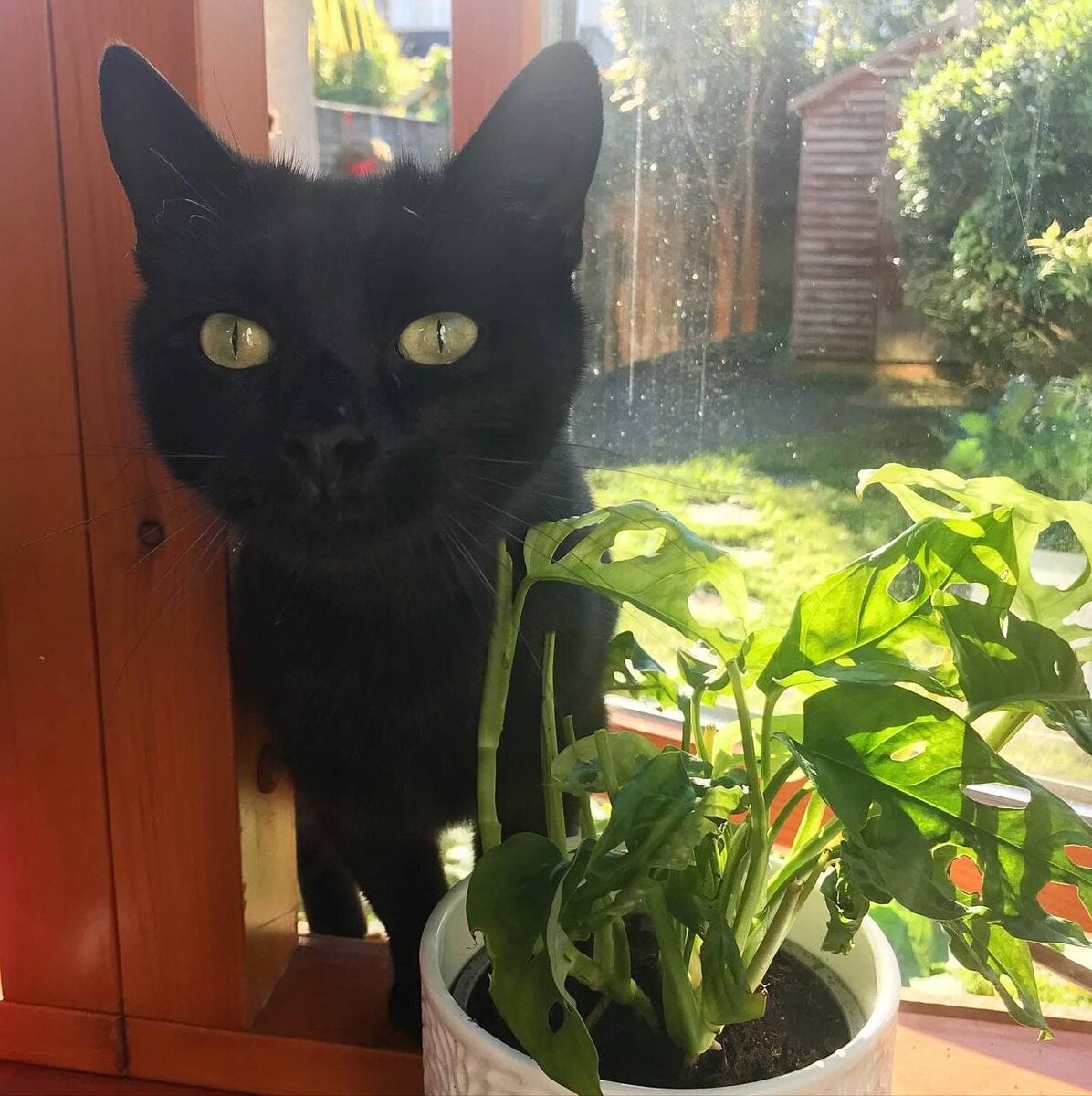 В личных сообщениях меня спрашивают, что за котов я показываю у себя в инстаграм почти каждое утро. Отвечаю - это не наши коты, но они нас очень любят и постоянно к нам приходят в гости. Они нас совершенно не боятся, приходят ластиться и мурчать, дают себя гладить и даже иногда могут позволить взять себя на руки. Иногда они прячутся от дождя в кустах нашего сада, лазят по пальме и точат об нее когти, греются на солнышке у нас на подоконниках. Мы думаем, что это коты наших соседей. Специально их мы не прикармливали, но изредка даем им специальные кошачьи вкусняшки. Даже если мы надолго уезжаем куда-то, коты к нам возвращаются. 😺Котикам, которые чаще всего к нам приходят, мы даже дали имена. 😸Самая общительная - Кошка-картошка, она черного цвета с белым бантиком на груди и порванным ухом, бывает у нас почти каждый день. Как-то летом посреди ночи она запрыгнула в форточку спальни и напугала нас. 😻Самый красивый - Пушкин (Pusheen), это черно-белый котик с короткими лапками, оч