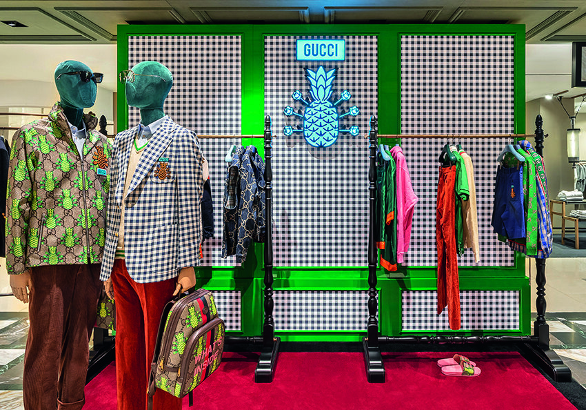 Первый магазин представлен в ЦУМе. Gucci объявил об открытии серии поп-ап-магазинов, посвященных выходу новой капсульной коллекции Pineapple. Инициатива направлена на установление связей между клиентами по всему миру. Для капсулы Алессандро Микеле разработал новый принт, который сочетает изображения ананаса и роз. Pineapple сочетает в себе эстетику уличной моды и выполнена в палитре пастельных тонов с добавлением более глубоких синих, коричневых и зеленых оттенков. В коллекцию вошли спортивные костюмы, свитера, жакеты, куртки-бомберы, рубашки поло, худи, брюки и футболки с винтажными мотивами Gucci.