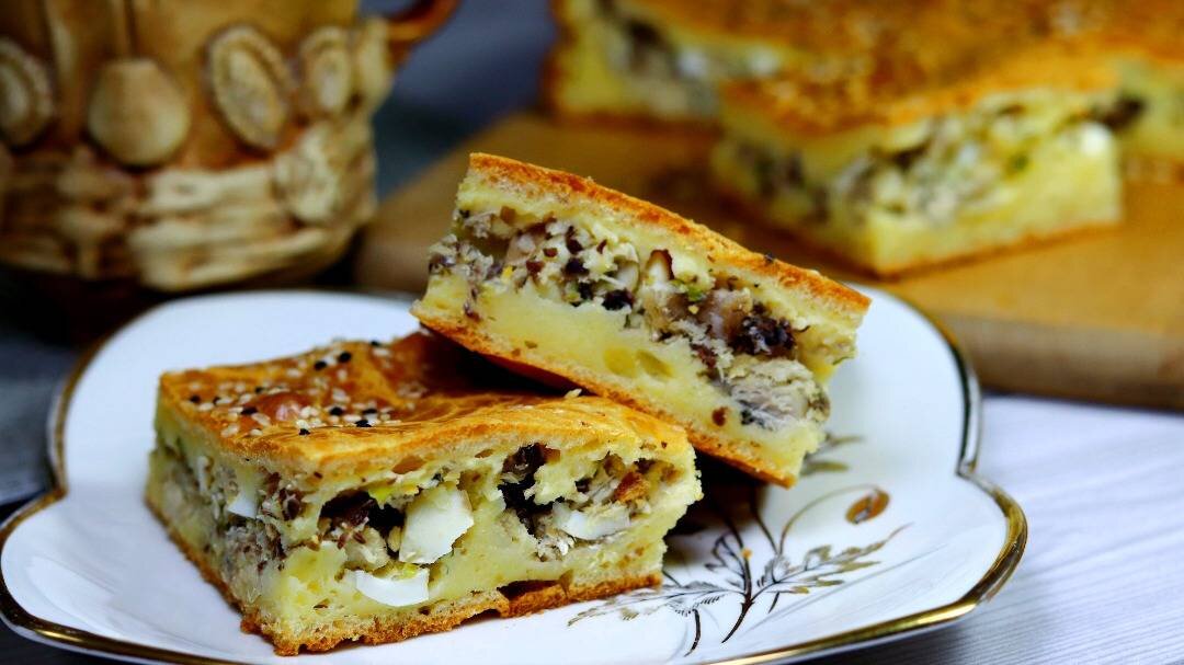 Хороший бюджетный вариант. Что делает этот рецепт заливного рыбного пирога очень популярным среди хозяек, ведь так можно быстро накормить всю семью. #23февраля Ингредиенты: Для теста:, - мука, - сметана, - майонез, - яйца, - разрыхлитель, - сахар, - соль, Для начинки:, - сардины в масле, - вареное яйцо, - лук зелёный, - зелень петрушки, - зелень укропа, - соль, перец, - семена кунжута Способ приготовления: Подготовить необходимые продукты. Яйцо отваренное порезать мелким кубиком. Мелко порезать лук и мелко порубить зелень. В кусочках рыбы удалить косточки, вилкой разделить на мелкие кусочки. К рыбе добавить яйцо, лук и зелень, приправить солью, перцем, аккуратно перемешать. Начинка готова. В отдельной миске смешать яйца, сметану, майонез, сахар и соль, перемешать венчиком массу. Всыпать половину муки и разрыхлитель, перемешать. Добавить остаток муки и замесить тесто, консистенции густой сметаны. Форму размером 23х23см., застелить пергаментом. Выложить в форму половину теста. На тесто р