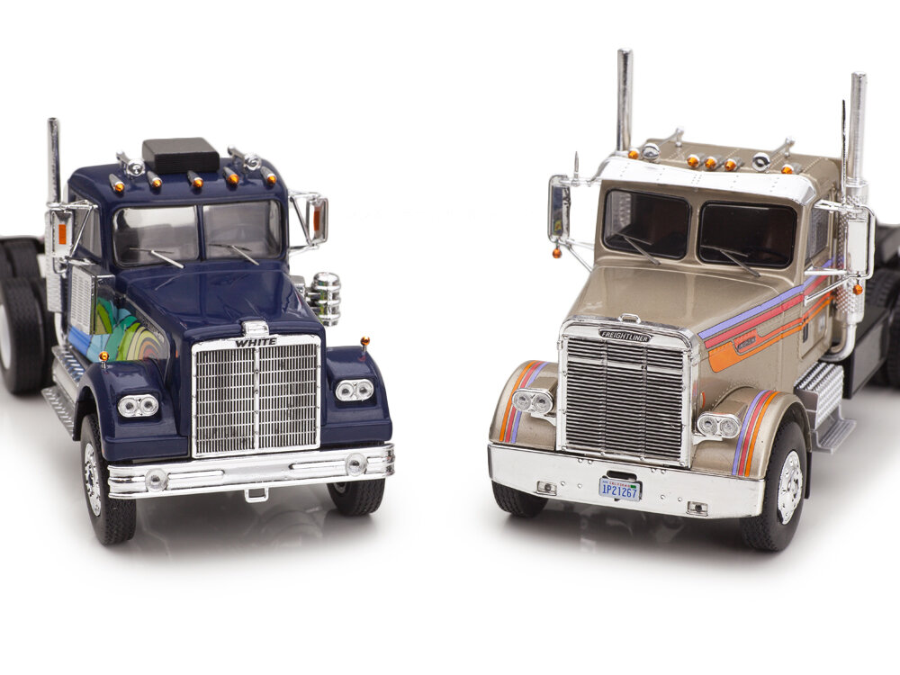 Всегда нравились американские магистральные тягачи: носатые, широколобые, с обилием иллюминации, фонарей и хрома. Ч0pт их знает, зачем им столько хрома, но грузовики выходили просто фантастическими!