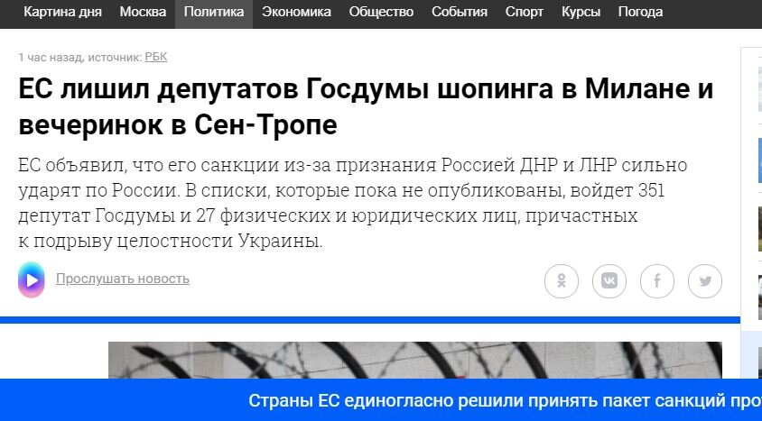 Никогда еще россияне не были благодарны Евросоюзу за санкции. Депутаты теперь будут ближе к народу - их дети начнут учиться в воронежских, рязанских, калужских, питерских и московских вузах (и прочих российских), в Куршавеле отдыхать теперь будут другие люди, а наши лучшие люди поедут в Крым, в Сочи, да в тот же Геленжик! Вместо шопинга в Милане предлагаю такой сервис, как Юла. Если нужны варианты покупок посложнее - то это Алиэкспресс. Там можно зарегаться, и доставка вполне надежная. Что делать с вечеринками? Гм... У меня проходят концерты, конечно - и очень веселые. Но есть одно но- надо покупать билет. Бесплатный у депутатов только проезд, а вот за культуру и искусство пусть платят. Куда им еще сходить? На выставки, мастер-классы, в театр...Но там тоже нужно платить и народ там очень такой...для них специфичный - люди читают книги, знают авторов, стихи поэтов, художников по именам ... В общем, с вечеринками сложновато может быть. Непросто. #депутаты #санкции #донбасс #война #