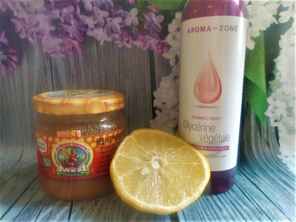 Маска с медом и глицерином работает идеально. Контур лица подтягивается, кожа выглядит посвежевшей, а морщинки менее заметными. Словом, омолаживающий эффект гарантирован. Маска подойдет для всех типов кожи, за исключением случаев, когда есть аллергия на пчелопродукты. Рецепт: Смешайте мед с глицерином. Добавьте к полученной смеси несколько капель лимонного сока. Мед и глицерин отлично удерживают влагу в коже, за счет чего она становится более эластичной. При достаточном увлажнении эпидермиса морщинки разглаживаются, а новая сеточка формируется гораздо медленнее. Кроме того, мед тонизирует, заживляет, обеспечивает мощную витаминную терапию. Глицерин избавляет от сухости, а лимонный сок очищает поры, улучшает цвет лица и слегка отбеливает. Количество меда и глицерина можно изменять, ориентируясь на комфортность ощущений. Маска наносится на 10 минут, затем смывается теплой водой. Средство используется два раза в неделю. Маску удобно наносить вечером. После нее кожа становится настолько на