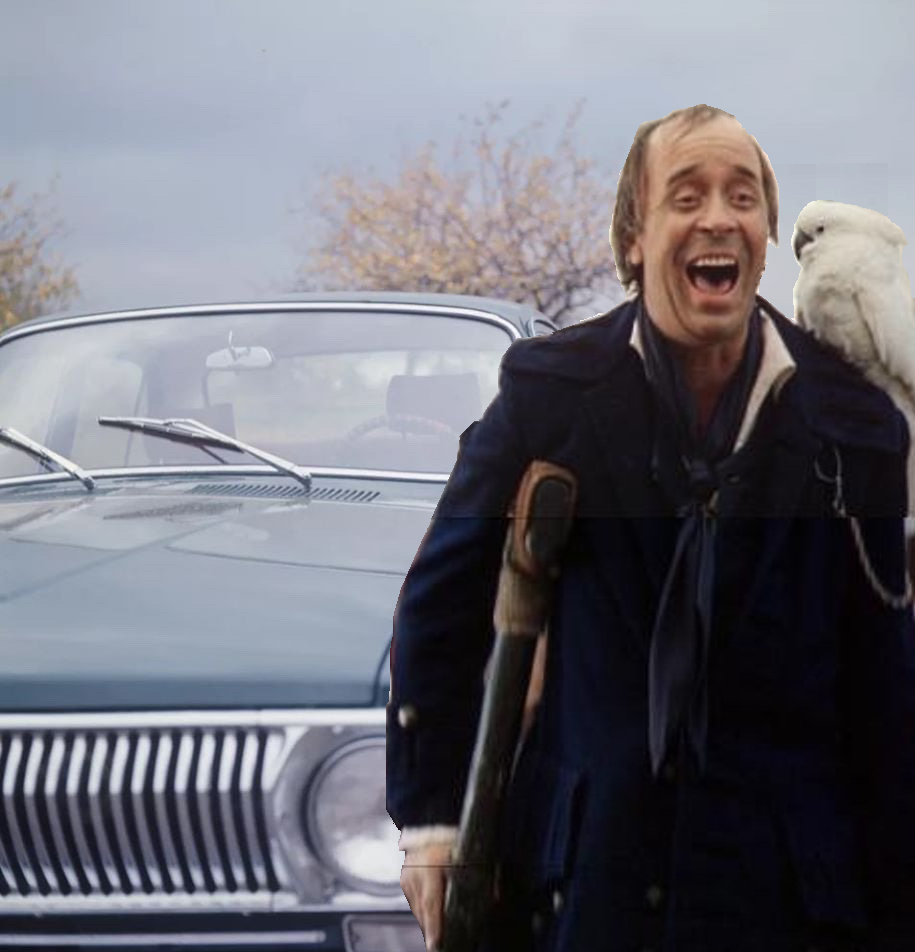 Мы видим респектабельного мужчину на собственной «Волге». Как и Сильвер, он лидер неформальной команды. Умён, обаятелен, на голову выше попавших под его влияние подростков (собственно говоря, и банду Сильвера можно рассматривать, с учётом жанровых особенностей романа Стивенсона и специфики детско-юношеского кино, как собрание не повзрослевших мужчин, «умственных детей», ведомых взрослым главарём). Ничего противозаконного и безнравственного, на первый взгляд, он не совершает. Напротив, его занятие освещено благородным огнём любви к искусству. Он всего-навсего коллекционирует нэцкэ, японские скульптурные миниатюры.