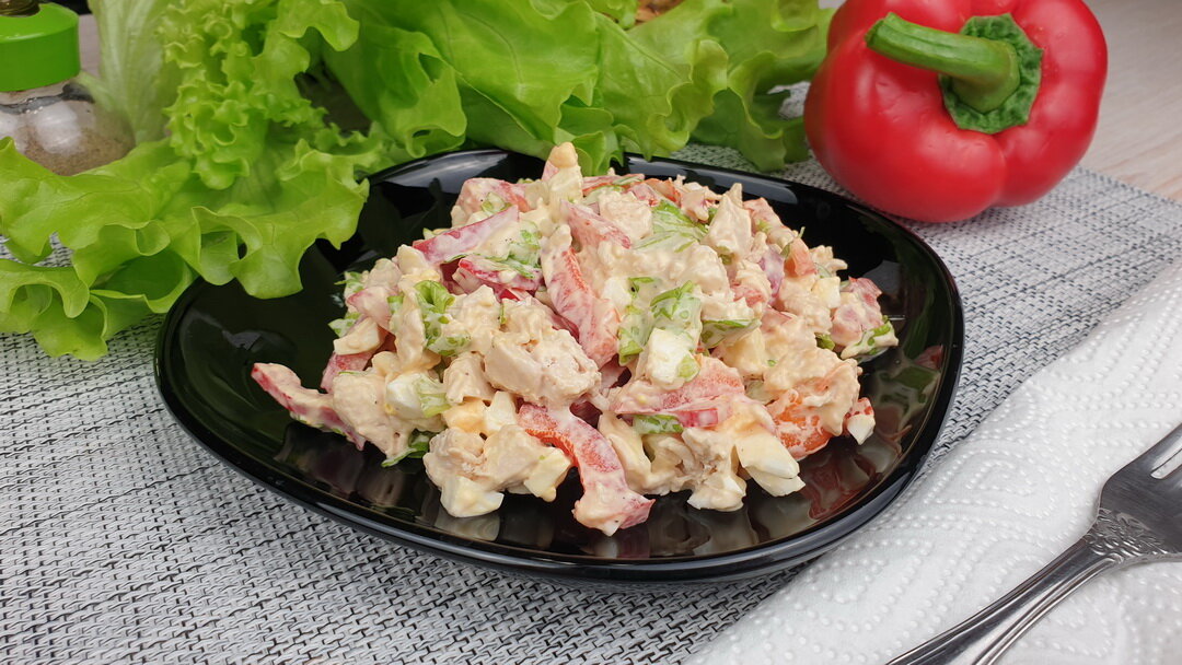 Салат с курицей и сладким перцем. Простой, но вкусный салат с куриной грудкой и болгарским перцем.