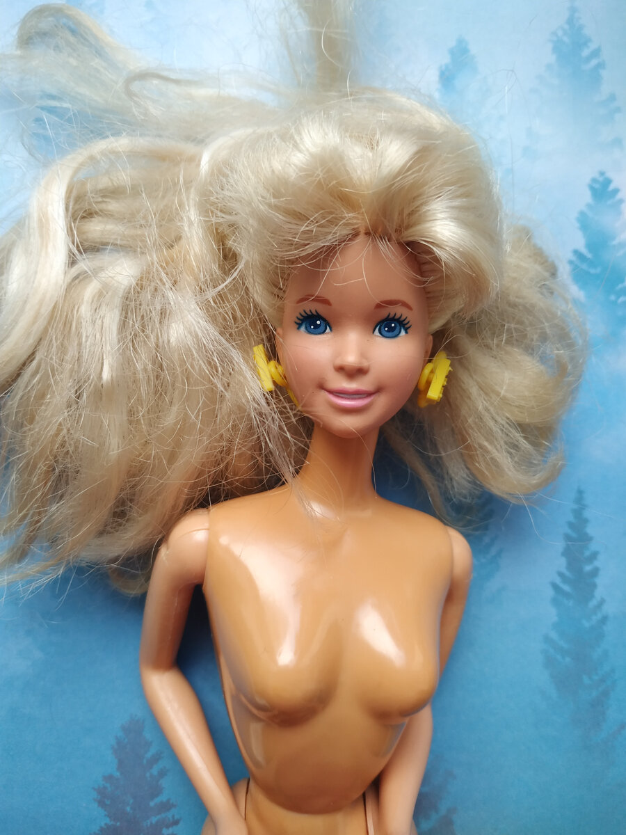 Откровенных поломок у неё не было. Разнотон корпуса и рук/ног не в счёт - это обычная история для кукол тех лет.