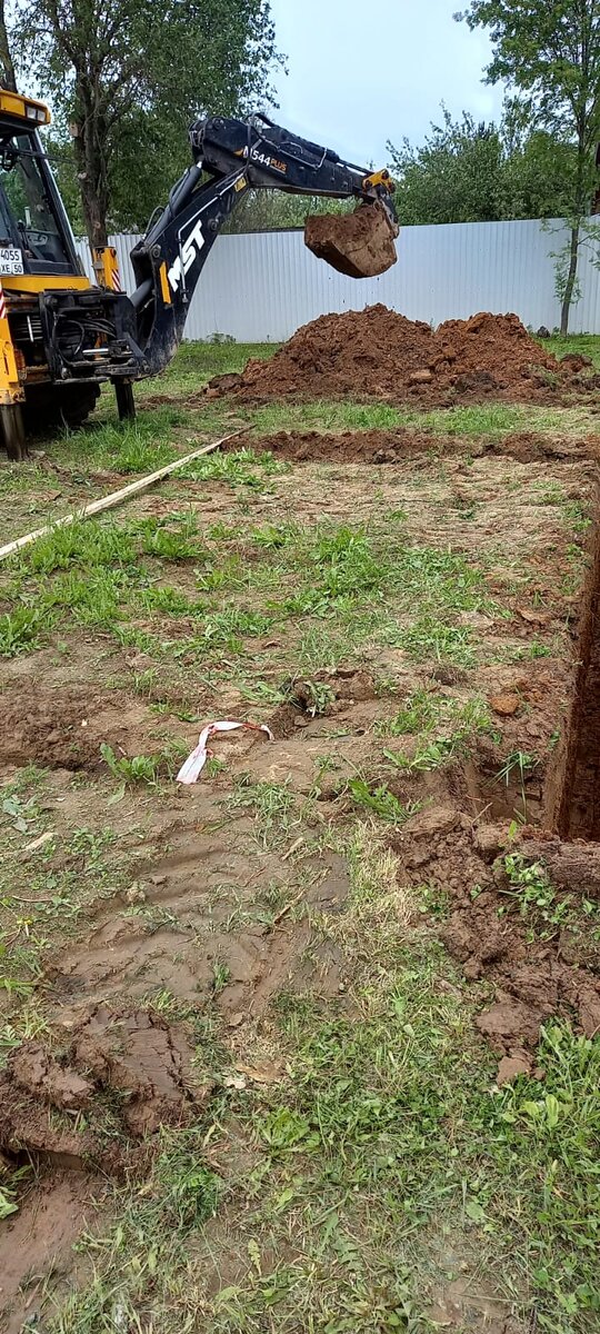 Здравствуйте друзья! Итак, следующий этап нашей стройки- фундамент. На дворе конец мая, начало июня.Место расположения дома на участке определили, надо было решать, как именно будем копать. Бюджет ограничен, поэтому нанимать фирму не вариант. На известном сайте подали объявление на поиск рабочих, будем кратки- не нашли. Очень странные товарищи откликались, видно было невооруженным глазом- работать не будут, или просили до изумления большую плату. Сумма за копку выходила порядка 40 тыс., и время работ заняло бы около 4х дней. И тут, как говорится, судьба повернулась к нам лицом))) К нам приехали брат и зять моего мужа, и здорово помогли нам в работе. В итоге- наняли трактор, сумма за работу 7 тыс, время работы 2 часа. Конечно, есть и минусы - края ямы при копке ковшом не такие ровные, как если бы копали лопатами, при движении вдоль ямы под фундамент, трактор в нескольких местах обрушил грунт, но в целом- если бюджет ограничен, трактор- очень хороший вариант. Небольшой лайфхак- если