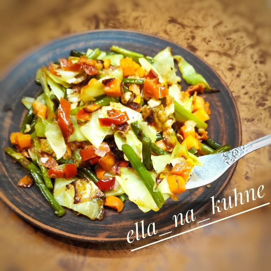Это испанское блюдо. Обозначает "запечённые овощи" - на гриле, костре, в духовке, на сковороде. За вдохновение спасибо IRINA @MIA_MIA ❤. #23февраля Ингредиенты: замороженных овощей, Соль, специи по вкусу, Растительное масло для жарки Способ приготовления: На разогретую сковороду с небольшим количеством масла выложить овощи из пакета. Жарить на среднем огне и через 5-7 минут посолить, поперчить по вкусу. На приготовление овощей у меня ушло меньше 15 минут. Приятного аппетита😍! Если вам по душе мои незатейливые рецепты: подписывайтесь и оставляйте свои фотоотзывы📸!