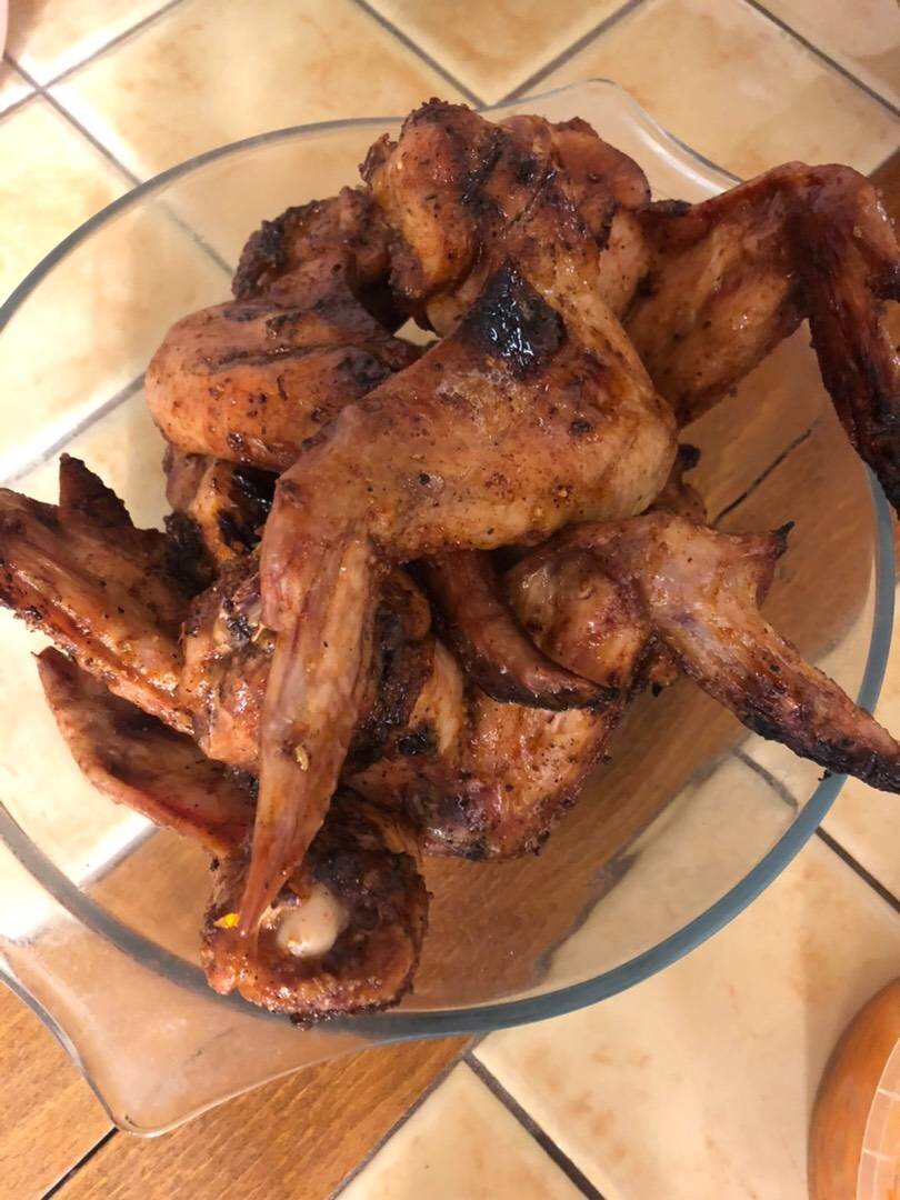 Вкусный маринад, хрустящая корочка 👍🏼. Ингредиенты: куриных крыльев, соевого соуса, копченой паприки, молотого чёрного перца, сухого чеснока, соль Способ приготовления: Крылья промыть, обсушить. Смешать все ингредиенты для маринада, залить крылья, оставить мариноваться минимум на 3-4 часа. Выложить крылья на решётку, жарить на углях до красивой золотой корочки. Для того чтобы крылья не подгорали, обязательно дождитесь, чтобы угли стали серого цвета, как бы с налетом. Приятного аппетита 🌸