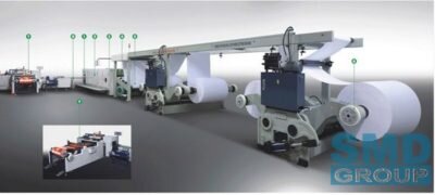 Предварительно очищенная бумажная масса поступает в бумагоделательную машину — сложный агрегат огромных размеров (длина — свыше 100м, ширина — 15-18м). За одну минуту полуфабрикат успевает пройти через все части БДМ;