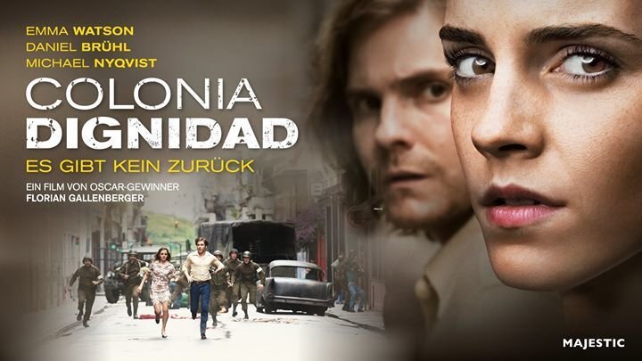 "Колония Дигнидад" - романтическо-исторический триллер режиссёра Флориана Галленбергера. Премьера фильма состоялась в 2015 году. О сюжете История разворачивается в 1973 году в Чили, когда немецкая стюардесса прилетает к своему молодому человеку. Даниэль - немецкий журналист, который переехал в Южную Америку и стал борцом за социализм. Главные герои попадают в эпицентр событий, когда генерал Пиночет устроил военный переворот. Молодых людей арестовывают, Лену спустя некоторое время отпускают, а Даниэля увозят в неизвестном направлении. Так как он является сторонником свергнутого президента Альенде, его помещают в тюрьму, которая находится на территории немецкого поселения под названием "Колония Дигнидад" под контролем религиозного культа. Секта "славится" тем, что кто в неё попадает, по своей или чужой воле, больше оттуда не возвращается. После того, как Лена узнала об этом, она направляется в "Колонию Дигнидад" под видом религиозного фанатика для того, чтобы спасти молодого человека. Ми