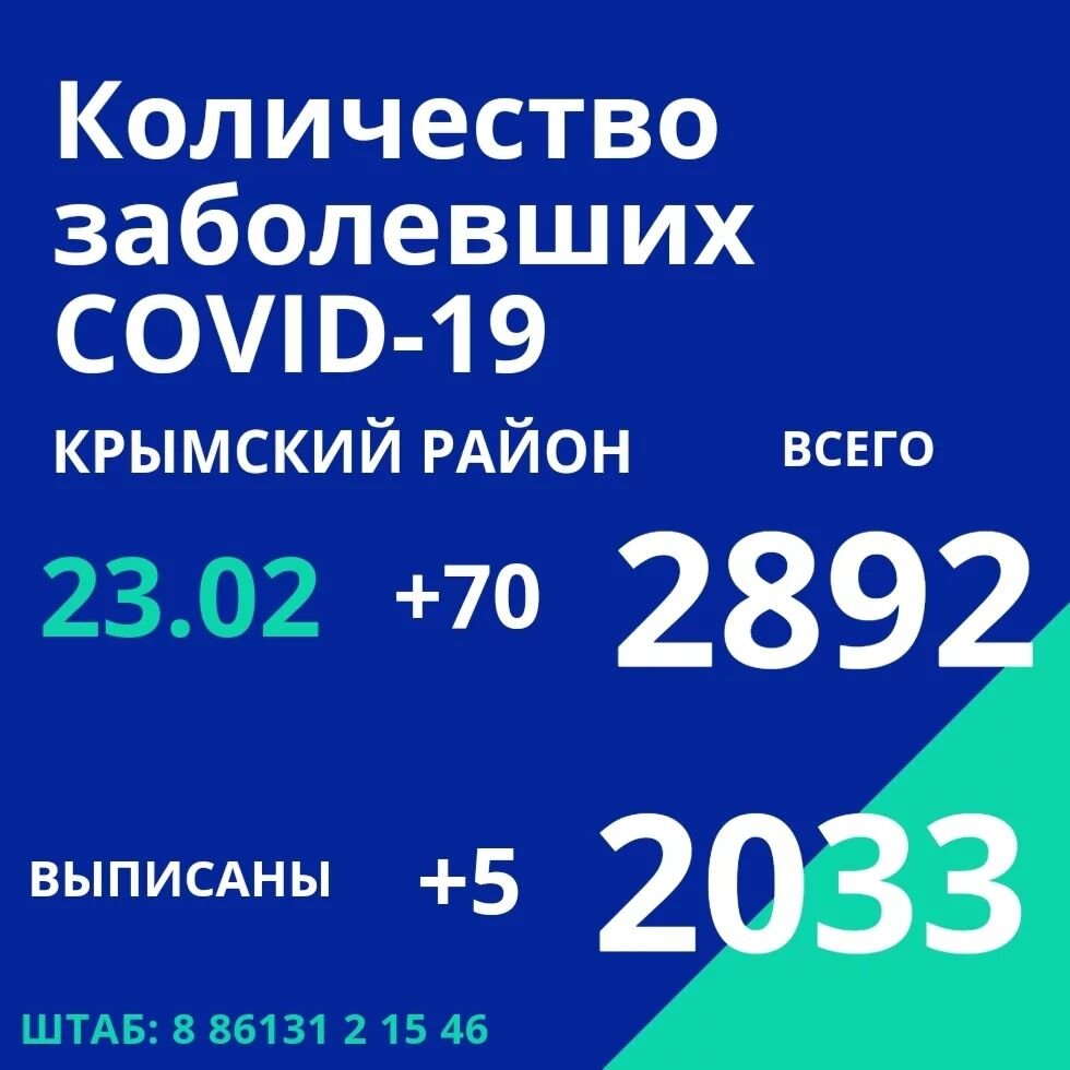 23 февраля по информации оперативного штаба Краснодарского края в Крымском районе 70 новых случаев заражения коронавирусной инфекцией.⠀