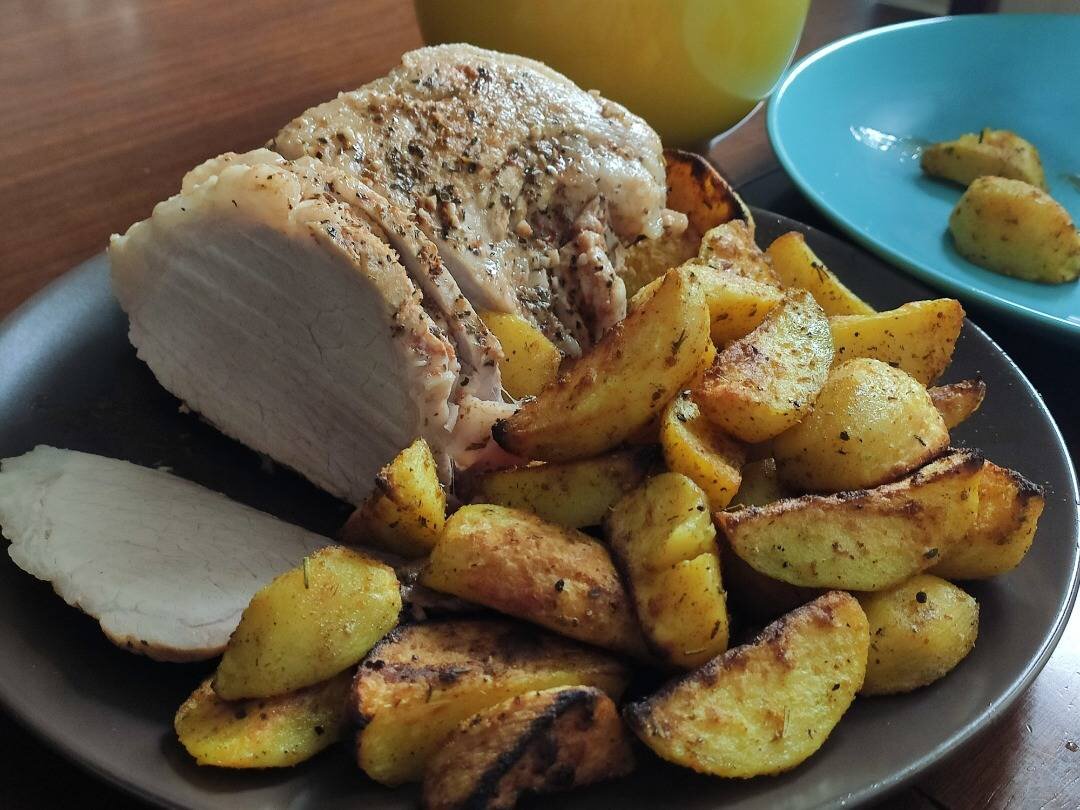 #23февраля - Знакомьтесь, Алиса, это - Окорок. Окорок, это - Алиса. © Ингредиенты: свиной окорок, вода, соль, специи Способ приготовления: Окорок вымыть, залить рассолом (1 л воды + 1 ст.л. соли). Накрыть тарелкой так, чтобы мясо было погружено в воду. Оставить на ночь. Перед приготовлением рассол слить, мясо посыпать со всех сторон специями. Положить в рукав для запекания, завязать концы с обеих сторон, выпустив воздух. Запекать в духовке при температуре 90 гр 3 часа. Конечная температура мяса (используйте термометр) должна быть 74 гр. Мясо вынуть из духовки, охладить. Положить на ночь в холодильник до созревания. Помните: - Я вам отрежу по кусочку? Как можно? Вас только познакомили, а ты уже на него с ножом. Унесите окорок!