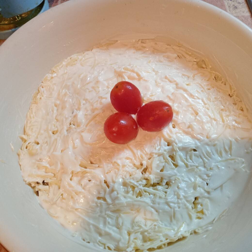 Очень лёгкий в приготовлении. Пропорции произвольные. Ингредиенты: Помидоры, Грибы маринованные, Сыр, Майонез Способ приготовления: Порезать помидоры, положить в салатницу. Грибы маринованные порезать, если крупные и уложить на помидоры. У меня грибы свои, маринованные опята. Сыр потереть на мелкой тёрке и положить сверху на грибы. Смазать верх салата майонезом. Не очень густо. Приятного аппетита.
