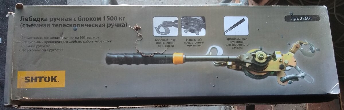 Производителем заявлена тяга в 1500 кг с блоком, 750 кг без использования блока. Произведем измерения. Ручка имеет длину от оси вращения до середины захвата рукой 30 см, в разложенном состоянии 45 см. Диаметр барабана - 36 мм, диаметр троса 6 мм, диаметр щек барабана - 99 мм. Пустой барабан. Рычаг приложения силы - 36/2+6/2 => 21 мм или 2.1 см Ручка сложена, блок не используется. Будем считать что в нормальной обстановке человек воздействует на рычаг с силой в 20 кг, при полном выкладывании определим силу в 45 кг. Ну а промежуточную возьмем в 35 кг. КПД блока 0.98, трение в оси ролика, сопротивление на изгиб троса ( диаметр ролика блока и барабана меньше оптимального ). Блок усиливает силу в 1.96 раза [ Измерять силу в надо либо килограмм-сила либо ньютоны , но не будем заморачиваться на нюансах системных единиц ] При сложенной рукояти 20 кг х 30/2.1 => ~280 35 кг х 30/2.1 => ~500 45 кг х 30/2.1 => ~640 С блоком 20 кг х 1.96 х 30/2.1 => ~560 35 кг х 1.96 х 30/2.1 => ~950 45 кг х 1.96