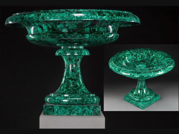 Две малахитовые таццы, высота 22,5 см, Россия, середина XIX века.