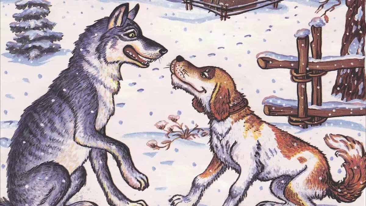 Остался бедный пес в лесу и начал плакать и проклинать свою долю. Вдруг идет из-за кустов большущий волк, увидал его и говорит: