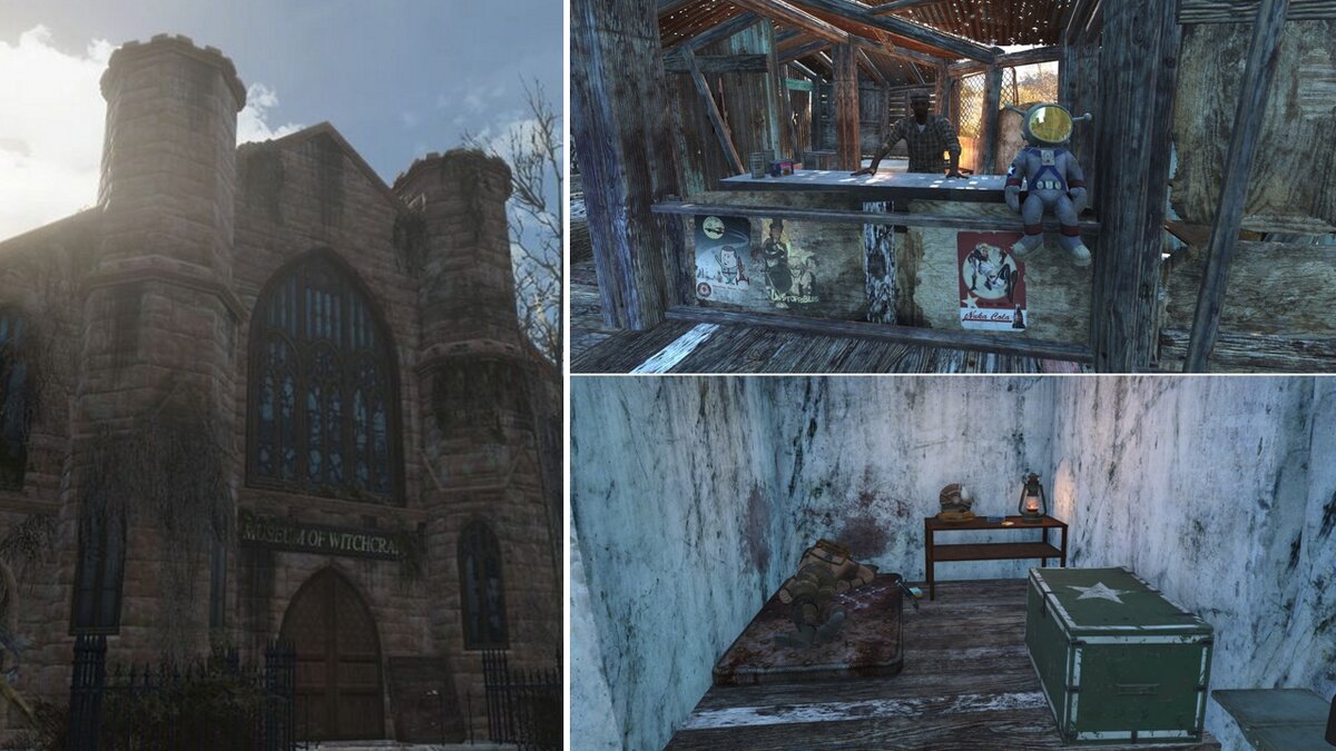 Как и большинство игр с открытым миром такого масштаба, Fallout 4 изобилует интересными деталями, как крупными, так и мелкими. Частью очарования игры является способность Bethesda создавать истории из окружающей среды, ведь многие разрушенные места, которые вы посетите в постапокалиптическом Бостоне, имеют свою историю, которая только и ждет, чтобы ее раскрыли. Существует огромное количество неисследованных локаций, скрытых секретов и отсылок. 10 "Дыра Хьюго". Эти складированные мраморные блоки были укрытием для одного из банды кованых Хьюго, который спускался в самые глубины Данвичских бурильщиков. Там в глубине Хьюго увидел нечто, какие-то знаки. Потом он покинул группу кованых и переселился в эту импровизированную цитадель поблизости. Таким образом он изолировал себя от остальной группы рейдеров, чтобы не убивать их. Но дальше не имея сил сопротивляться указаниям этой сверхъестественной силы, он убивает себя. При подходе к этой локации вы можете услышать звук выстрела из пистолета