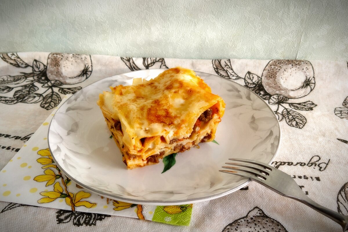 Я люблю готовить запеканки на праздничный стол. Так гораздо проще и быстрее. Нарезать пару салатиков, пока духовка работает, и стол накрыт. Лазанья - идеальный вариант: приготовить начинку и соус (можно даже накануне праздника), а пластины для лазаньи отваривать не надо. Сразу уложить слоями, а дальше духовка сделает всё сама. Ингредиенты на 6 порций: 1 луковица 50 г сала или грудинки 1 морковь 1 стебель сельдерея 400 г говяжьего фарша 3 ст.л. томатной пасты 200 мл мясного бульона 50 г сливочного масла 60 г муки 700 мл молока Соль, перец, мускатный орех 6-8 пластин для лазаньи 100 г тёртого сыра Приготовление Морковь, лук и чеснок очистить. Стебель сельдерея вымыть. Овощи и грудинку нарезать маленькими кубиками. В сковороде разогреть одну столовую ложку растительного масла и обжарить грудинку. Добавить овощи. Жарить 5 минут. Выложить фарш к овощам и жарить, пока он не изменит цвет. Добавить томатную пасту, бульон, соль и перец. Накрыть крышкой и тушить 20 минут на маленьком огне. При