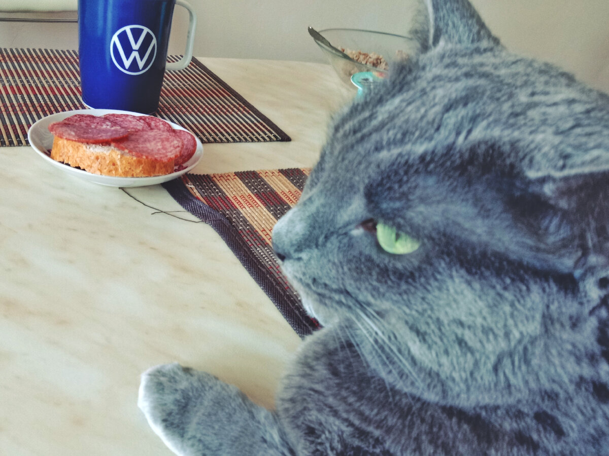 Есть такие хозяева вредные, которые кошку не кормят минут через пятнадцать после того, как уже покормили ее. И вот с такими бессердечными людьми бедному и несчастному животному жить еще приходится. Но голод и желание ещё немножко полакомиться чем-нибудь вкусненьким, как говорится, не тетка, поэтому хитрый питомец ищет разные способы человека разжалобить. А способов у мурлык очень много, живя бок о бок с двуногими, они в совершенстве освоили обман и манипуляцию. У нас одна кошка по имени Няша просто спец в этом вопросе. Может, если что, консультации другим кошкам по этому вопросу давать...за еду. Ну, то что два хозяина – это два раза еда, кошка поняла сразу. Иногда утром вот так приходишь на кухню, где муж с Няшей сидят, а серая хитрюга сразу ко мне бросается, а потом сразу к миске пустой. В общем, намекает как может. Муж естественно сразу докладывает, что кормил ее, говорит чем и сколько кусков давал. Однако Няша глазами, полными тоски и надежды вглядывается мне в лицо: "Хозяйка, н