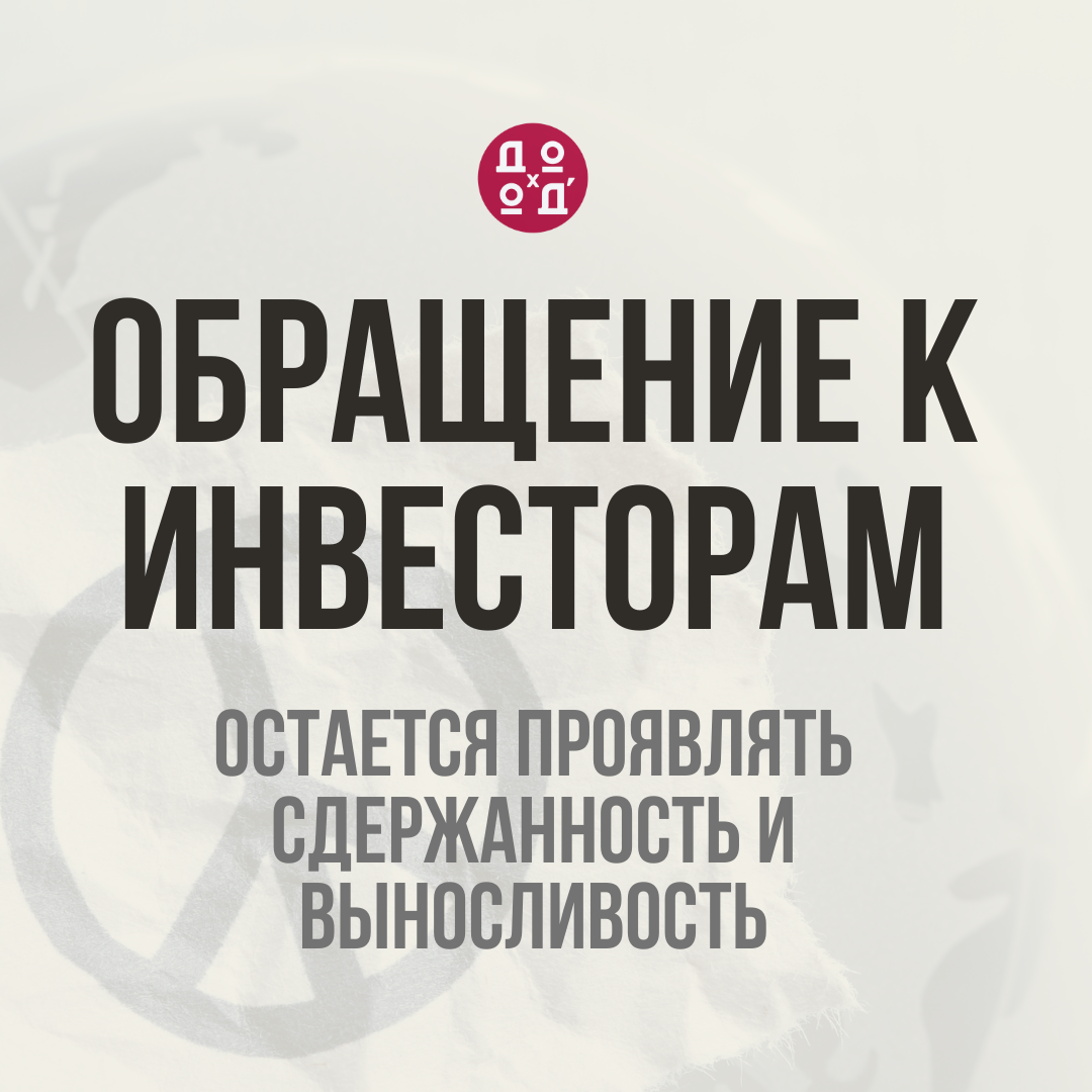 Сложившаяся геополитическая ситуация является экстраординарной. Почти любой инвестиционный портфель в таких условиях несет убытки. И, хотя, убытки являются частью процесса инвестиций, сейчас невозможно ожидать сохранения ощущения комфорта. Поэтому остается проявлять сдержанность и выносливость. Почти любой совет сейчас натыкается на череду всевозможных сценариев, которые сводят его на нет. Большинство решений, которые отражаются в текущем результате по вашим инвестиционным счетам уже принято: распределение активов по валютам, классам, наличие или отсутствие денежного резерва. Если ваш портфель правильно сконструирован, то, в конце концов, он вернется на нужную траекторию роста. Поэтому, вместо того, чтобы перебирать все сценарии и действовать спонтанно, мы рекомендуем сосредоточиться на вещах, которые вы можете контролировать. К сожалению, в этой ситуации их немного. После того как волатильность на рынках снизится и цены не будут различаться на десятки процентов в течение дня, можно по