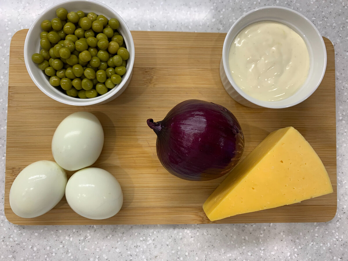 Сегодня хочу поделиться рецептом суперпростого салата, который подавали в ресторанах в советское время. Времени на его приготовление уйдет не больше 15 минут. Сейчас салат "Чайка" незаслуженно забыт. Теперь такой салат в ресторане не встретишь: слишком простенький для этого. Но почему бы не готовить его дома? Отличный повседневный салатик. Получается очень сытно и питательно. И из самых доступных продуктов. Количество необходимых ингредиентов я оставлю в конце статьи 👇 В первую очередь ставим вариться яйца и займемся луком. Лук для салата я использую красный, но можно и обычный. Нарезаем так, как нравится, вашим любимым способом: хоть кубиками, хоть полукольцами. Я предпочитаю второй вариант. Отправляю лук в миску, в которой буду его мариновать. Добавляю 2 столовые ложки сахара, 1 чайную ложку соли, 2 столовые ложки уксуса 9%, 1 столовую ложку растительного масла. Хорошо перемешиваю и заливаю кипятком. Вода должна слегка прикрыть лук сверху. Еще раз перемешиваю. Это количество инг